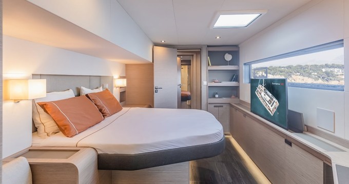 Ce catamaran peut accueillir jusqu’à 10 invités, idéal pour des vacances en famille, entre amis ou pour un événement privé.