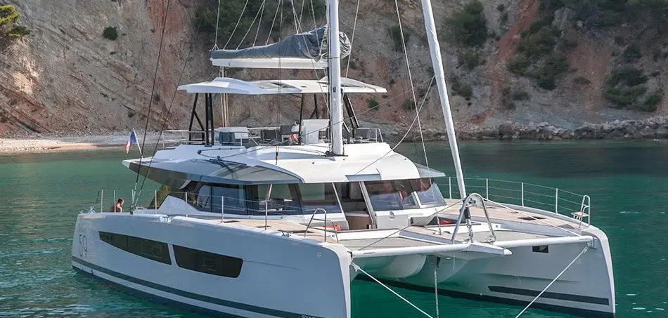 Un catamaran d’exception alliant espace, élégance, luxe  et performances. Au départ de notre base Corse Grand Large à Porto-Vecchio, embarquez pour une expérience inoubliable avec équipage inclus, en toute sérénité.